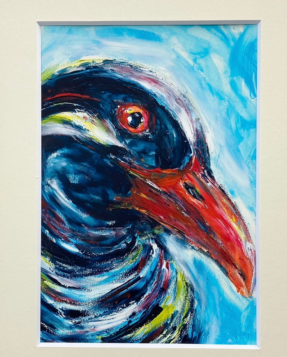 この作品は、2020年に制作したもので、ヤンバルクイナが楽しそうに散歩しているような表情を捉えています。愛らしい姿が見る人に心の安らぎを与え、穏やかな気持ちにさせてくれます。