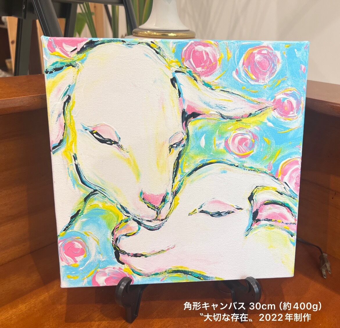 【大切な存在-子ヤギ / Precious Presence-Little Goats 】Fingerpainter Yukako 角型キャンバス 30㎝ | Fingerpainter Yukako Shop