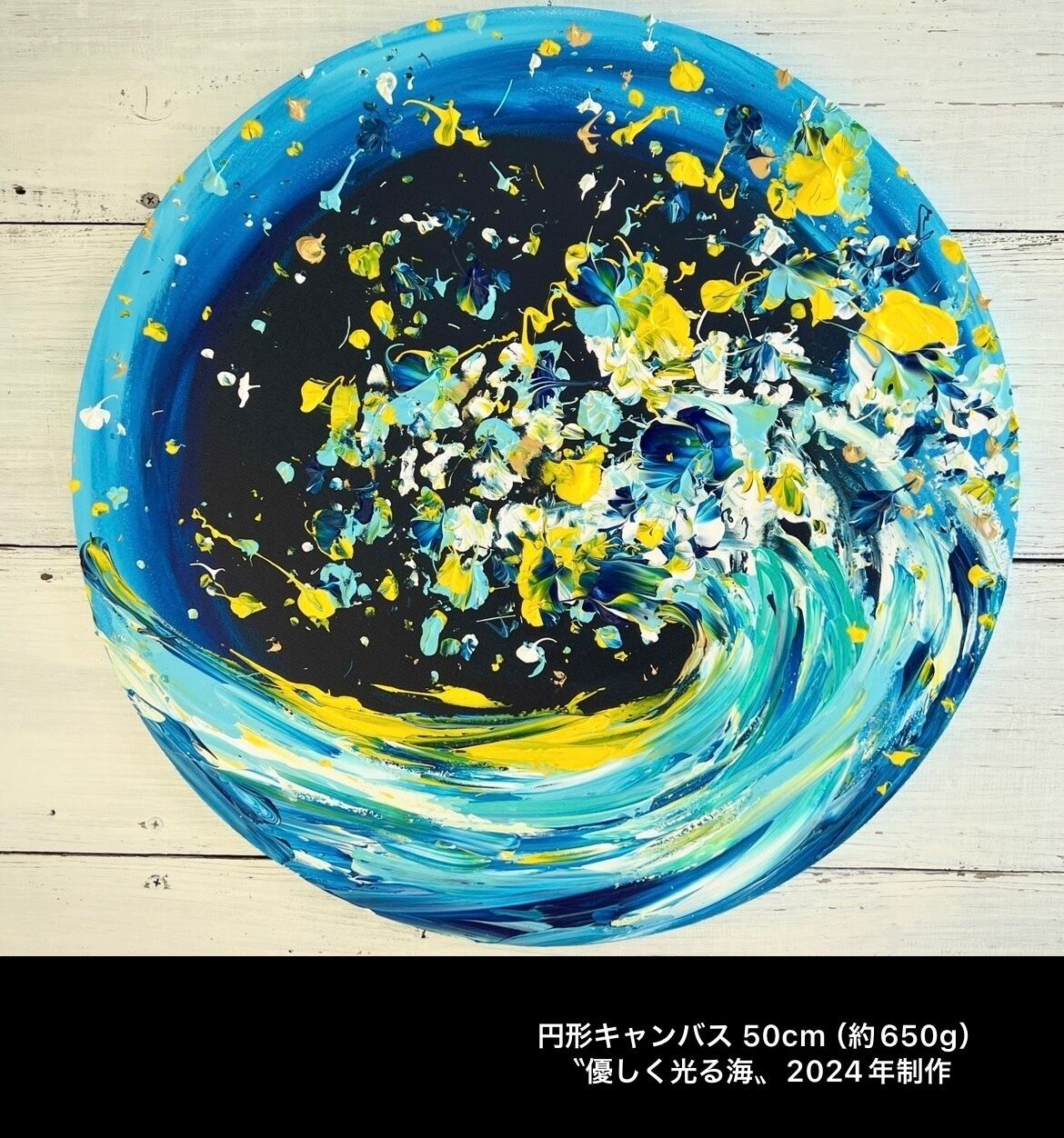 【優しく光る海 / Gently Shining Sea 】Fingerpainter Yukako Original Paint 円形キャンバス 50㎝